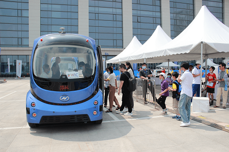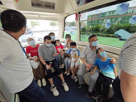 “來試乘體驗的市民很多,不少家長趁著周末帶小朋友過來,這里已經快成了網紅打卡地了,或者說是小朋友們接觸新鮮科技的另類課堂。”蘇州金龍技術中心智能網聯研究室工程師司炎鑫穿梭于人群之中,一面維持著秩序,一面解答市民關于自動駕駛的技術問題。他告訴記者,參展的“深藍”L4級自動駕駛巴士是海格客車2019年推出的產品,也是很能代表海格客車自動駕駛研發成果的經典車型。