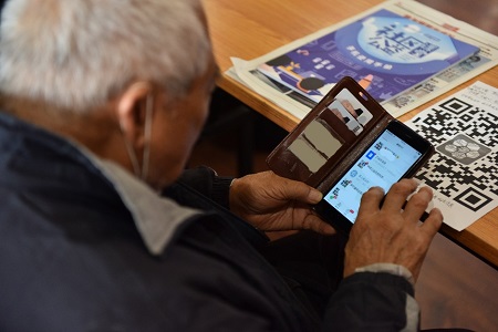 一位在貝殼“我來教您用手機”公益課堂上學習的老年人