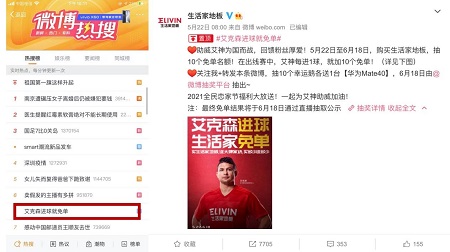 面對生活家地板全民戀家節(jié)這么好的機(jī)會(huì),觀眾們又怎會(huì)錯(cuò)過呢!在5月30日首賽當(dāng)晚,大家都和生活家地板一起,關(guān)注世預(yù)賽的最新動(dòng)態(tài),為艾克森助威加油,由此掀起了一波觀賽熱潮,#艾克森進(jìn)球就免單#的話題沖上微博熱搜,收獲超7000萬的閱讀量,同時(shí)吸引體壇周報(bào)、虎撲足球、搜達(dá)足球等媒體的關(guān)注。