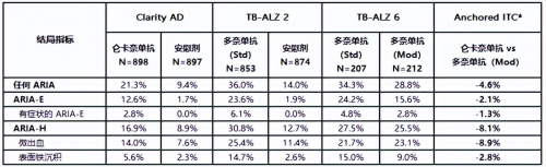 值得一提的是,即便TB-ALZ 6研究減少了納入更容易發生ARIA事件的APOE ε4攜帶者比例,整個研究僅有21名APOE ε4純合子患者接受了改良滴定劑量,不符合現實中的攜帶者比例,可即便如此,侖卡奈單抗依然存在安全優勢。
