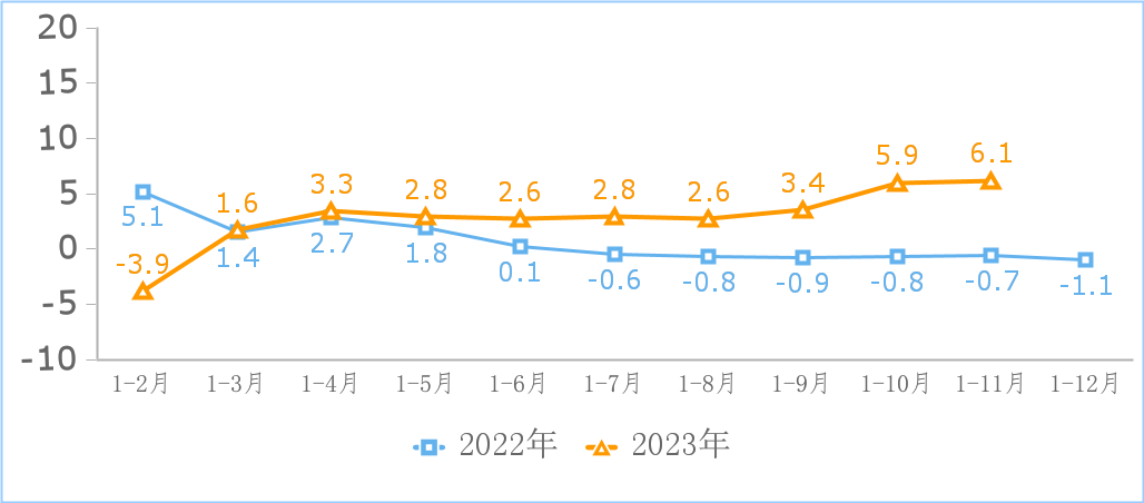 互聯網業務收入增速持續提升。1-11月份,我國規模以上互聯網和相關服務企業1(以下簡稱互聯網企業)完成互聯網業務收入15668億元,同比增長6.1%。