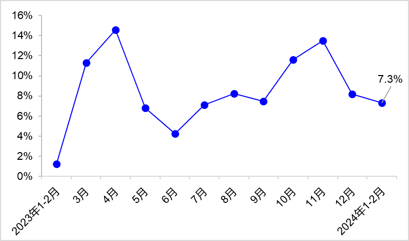 1—2月,完成營(yíng)業(yè)性貨運(yùn)量76.6億噸,同比增長(zhǎng)7.3%。其中,完成公路貨運(yùn)量54.5億噸,同比增長(zhǎng)7.8%;完成水路貨運(yùn)量14.0億噸,同比增長(zhǎng)10.2%。