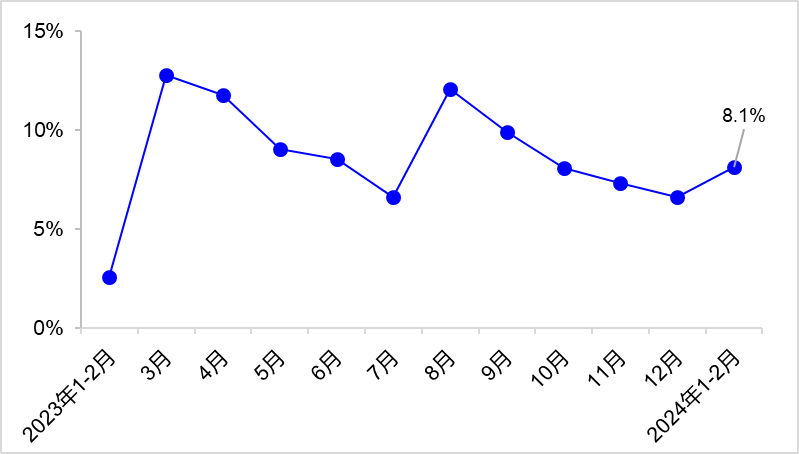 1—2月,完成交通固定資產(chǎn)投資3885億元,同比增長(zhǎng)1.0%。其中,完成公路投資2736億元,同比下降6.4%;完成水運(yùn)投資273億元,同比增長(zhǎng)17.0%。