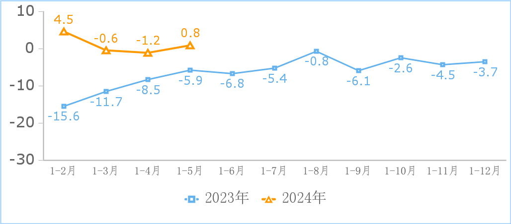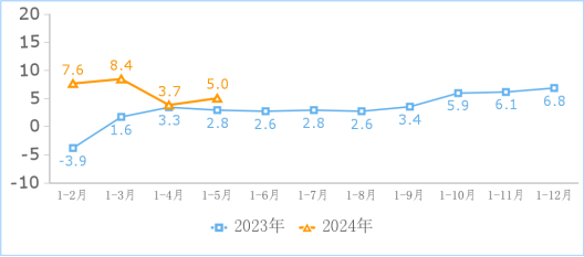 圖5 2024年1-5月份經濟帶地區互聯網業務收入增長情況