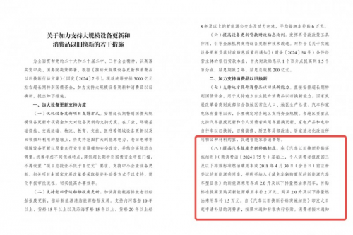 7月25日,由國家發展改革委、財政部聯合印發的《若干措施》。進一步加大了對重點領域更新換新的補貼力度。在汽車報廢更新方面,對符合條件的汽車報廢更新,將補貼標準由此前的購買新能源乘用車補貼1萬元、購買燃油乘用車補貼7000元,分別提高到2萬元和1.5萬元,增長了一倍及以上。