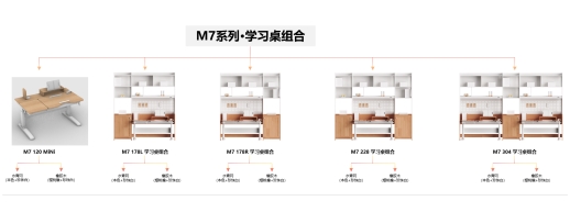 M7系列學習桌組合,組合書柜和學習桌均可單獨購買,如果家中已有光明園迪老款學習桌,組合書柜也可兼容其他型號的學習桌;M7 120mini學習桌可單獨購買:可滿足不要書架,將學習桌放置在窗戶邊上的用戶需求;也可滿足喜歡簡約學習桌的朋友;M7系列學習桌還有多種尺寸和設計自由選擇,有M7 178L學習桌組合,有M7 178R學習桌組合,更有M7 228學習桌組合,以及最豪橫的M7 304學習桌組合!M7 304學習桌,可以滿足二胎家庭兩個孩子同時學習的需求,或者孩子學習,父母從旁辦公的需求。
