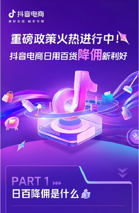 核心提示:今年 7 月,抖音電商正式推出了日用百貨行業降傭政策,訂單傭金扣點從原有的5%大幅下調至2%。“降傭”福利還在繼續,日百賽道商家入局不晚!今年 7 月,抖音電商正式推出了日用百貨行業降傭政策,訂單傭金扣點從原有的5%大幅下調至2%。覆蓋“家庭/個人清潔工具” “家居飾品” “居家日用” “收納整理”四個一級類目,凡在抖音電商開設抖音小店且店鋪處于正常營業狀態的商家均可參與,不設置任務門檻,惠及30多萬平臺日用百貨商家。