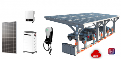 固德威北極系列光電建材、逆變器、儲能、智慧能源管理平臺的結合,最終得到了一個集發電、儲能、充電和智慧能源管理功能為一體的智能微網系統。應用在車棚場景中,即是我們所說的光儲充一體化車棚。整個系統可通過并、離網運行模式的無縫切換與電網實現智能互動,在為電動汽車提供綠色能源的同時,兼顧了電力削峰填谷等功能,極大提升整個系統的經濟效益。