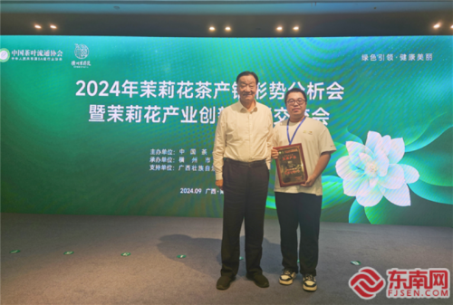 核心提示:9月26日下午,2024年茉莉花(茶)產(chǎn)銷形勢分析會暨茉莉花產(chǎn)業(yè)創(chuàng)新主題交流會在廣西南寧召開。會議公布了中國茶葉流通協(xié)會關(guān)于2024年全國茉莉花茶產(chǎn)品質(zhì)量與包裝調(diào)查推選結(jié)果并進(jìn)行授牌。9月26日下午,2024年茉莉花(茶)產(chǎn)銷形勢分析會暨茉莉花產(chǎn)業(yè)創(chuàng)新主題交流會在廣西南寧召開。會議公布了中國茶葉流通協(xié)會關(guān)于2024年全國茉莉花茶產(chǎn)品質(zhì)量與包裝調(diào)查推選結(jié)果并進(jìn)行授牌。閩榕茶業(yè)·大經(jīng)茶莊的九窨宗師1號榮獲全國茉莉花茶五星產(chǎn)品第一名,位居榜首。
