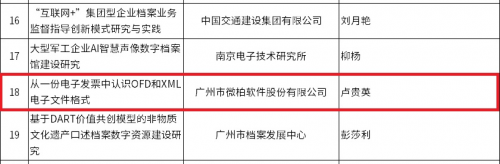 核心提示:近日,中國檔案學會檔案信息化技術委員會2024年度學術征文評審工作圓滿結束,公布入選論文名單。本次征文活動得到全國檔案工作者的熱切關注和積極參與,征文共收到論文投稿142篇。近日,中國檔案學會檔案信息化技術委員會2024年度學術征文評審工作圓滿結束,公布入選論文名單。本次征文活動得到全國檔案工作者的熱切關注和積極參與,征文共收到論文投稿142篇。經中國檔案學會檔案信息化技術委員會組織遴選出論文28篇,其中微柏軟件的兩篇論文——《工程數據歸檔管理中的驗證與電子簽名方式》與《從一份電子發票中認識OFD和XML電子文件格式》成功入選。