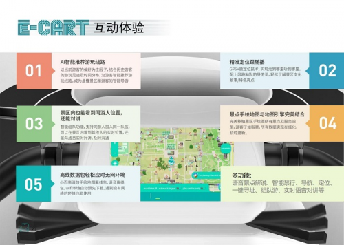 E-cart智游車憑借其智能化的特性,讓旅游出行變得更加便捷與高效。智能代步車語音對講系統(tǒng)、云平臺信息管理系統(tǒng)、交互式智能配對位置信息共享系統(tǒng)等軟著成果的應(yīng)用,使得游客在旅途中可以實(shí)時獲取路況信息、與同行者保持緊密聯(lián)系,甚至參與趣味橫生的社交游玩互動。這些智能功能不僅提升了旅游的安全性與趣味性,還極大地豐富了游客的旅行體驗。