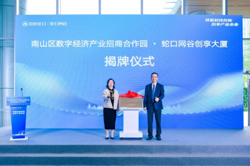 隨后,李志娜和伍斌上臺為南山區數字經濟產業招商合作園揭牌,蛇口網谷創享大廈正式揚帆啟航。