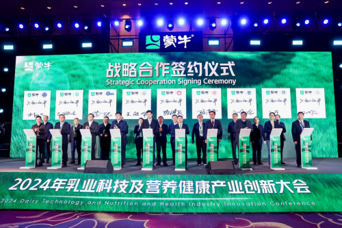 當天大會上,蒙牛再次與中科院生物物理研究所、中國標準化研究院、上海交通大學、中國農業科學院、中國農業大學、江南大學、北京工商大學、國科大杭州高等研究院、內蒙古農業大學等研究機構達成戰略合作,旨在通過緊密合作,加速乳業科技的研發與應用、激發行業創新活力。