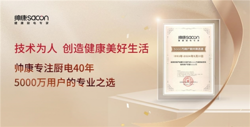 正是帥康這種對產品的匠心堅守以及持續不斷的產品升級策略,才贏得了5000萬用戶的信賴與支持。今天,帥康作為健康廚電專家,堅持“技術為人,創造健康美好生活”的企業使命,持續推動技術升級、產品創新,積極擁抱產業變革,不斷引領行業向前發展。未來,帥康將持續聚焦中國廚房生活,為提升中國家庭的烹飪體驗而不斷努力,讓愛與溫暖在廚房中不斷延續和升華,為更多家庭帶來健康美好生活。