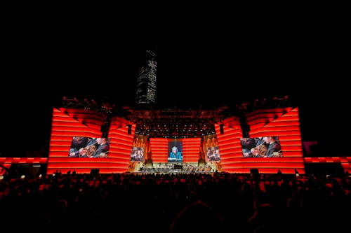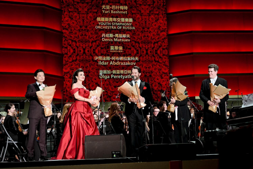 演出曲目覆蓋古典與現代,打造出跨越東西方的藝術對話。從里姆斯基-柯薩科夫到威爾第的經典作品,再到中國現代音樂的代表作,每一首樂章都訴說著文化與藝術的深度交融。特別是在第二晚,音樂會達到了情感與藝術的雙重巔峰。伊爾達爾·阿布德拉扎科夫和女高音歌唱家奧麗加·佩雷蒂亞特科獻上的《瓦蘭客商之歌》《斗牛士之歌》《瑪爾法的詠嘆調》《維奧萊塔的詠嘆調》等經典選段張力十足;莫華倫則通過《萬里長城永不倒》和《我的太陽》,激發現場觀眾的強烈共鳴;丹尼斯·馬祖耶夫從拉赫馬尼諾夫《第二鋼琴協奏曲》第三樂章的熾烈與深情,到《黃河》鋼琴協奏曲的恢宏氣勢,將東西方經典作品在演奏中穿插交替,仿佛在講述一段跨越國界與文化的對話。