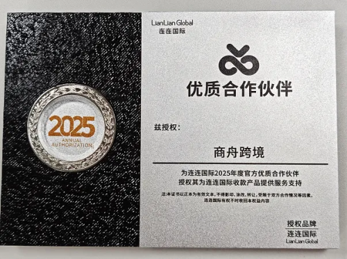 商舟跨境獲連連國際2025年度優(yōu)質(zhì)合作伙伴授權(quán)