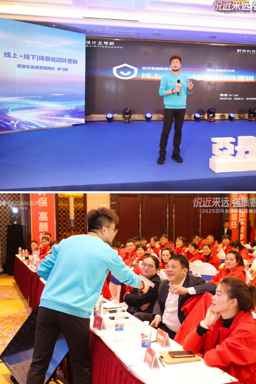 銷售部總監 李貴福 做“穿越“窄門”做不一樣的亞丹”主題分享,提出“寬門中的窄門”策略。線上裂變:總部提供直播腳本與AI工具,打造“高顏整家”IP矩陣;線下深耕,精準觸達存量房客群;平利模型:打破單品毛利思維,以整家訂單視角優化利潤結構,同步啟動“客戶LTV計劃”,挖掘終身價值。