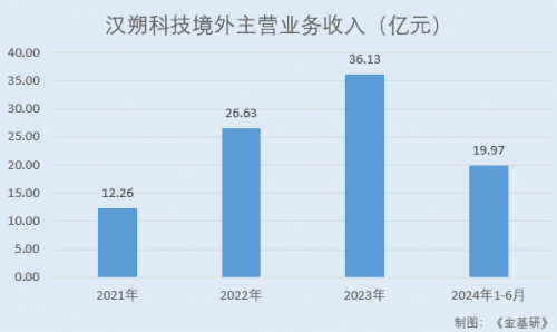 2021-2023年及2024年1-6月,漢朔科技境外主營業務收入分別為12.26億元、26.63億元、36.13億元、19.97億元,占當期主營業務收入的比例分別為76.04%、93.05%、95.72%、94.32%。2024年上半年,漢朔科技境外收入占比小幅下降,主要系國內收入同比快速增長。