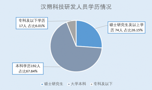 截至2024年6月30日,漢朔科技共有研發人員283人,占總人數的比例為31.76%。其中,碩士研究生及以上學歷研發人員占比26.15%,本科學歷研發人員占比67.84%。
