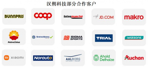 目前,漢朔科技已經與歐尚(Auchan)、阿霍德•德爾海茲(Ahold)、奧樂齊(Aldi)、華潤萬家、多點集團等國內外零售頭部企業形成戰略合作關系。其中,法國六大零售商超中漢朔科技已正式服務歐尚、E.Leclerc、Systeme U和ITM四家,荷蘭最大的日用零售商Ahold、德國最大的連鎖零售超市Aldi分別于2018年、2020年開始與漢朔科技合作。