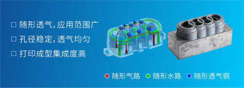 透氣鋼工藝:在3D打印模具零件時,可隨意指定透氣區(qū)域,有效解決成型過程中的困氣問題,減少產(chǎn)品表面瑕疵,提升產(chǎn)品質(zhì)量。除了模具領(lǐng)域外,透氣鋼在氣體過濾與水過濾場景中也有大量應用。