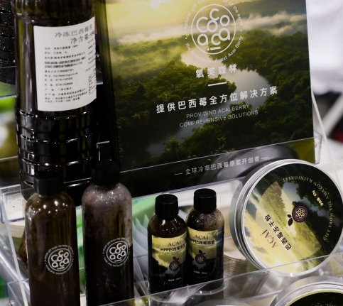 專注巴西莓全產業鏈開發的創新品牌「氧芙森林」攜巴西莓凍干粉、HPP巴西莓原漿驚艷亮相輕食大會。巴西莓又稱阿薩伊果,是一種原產于南美亞馬遜雨林地區的深紫色漿果,主要生長在阿薩伊棕櫚上,因含有大量花青素和原花青素備受消費者喜愛。
