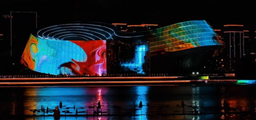 技術進步構建創新基座,應用場景則拓展了想象的邊界。當前,文化與旅游深度融合,夜間經濟的重要性日益顯著,室外分布式裸眼 3D 投影機的性能特質使其在文旅領域具備了巨大的應用潛力,例如杭州良渚新城玉湖公園美術館如夢如幻的流動光影,湖北十堰武當山太極湖令人沉浸的夜游體驗等代表性作品不僅推動了文旅業態的豐富和產品的升級,帶來了獨具特色的人文藝術體驗,還有力地拉動了商業消費,促進夜間經濟發展。