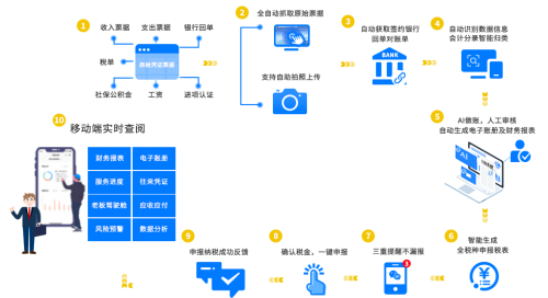 “巧記賬”的核心優勢在于其高度智能化。系統通過AI自動抓取原始憑證、匹配銀行流水,并智能生成會計憑證和財務報表,企業只需簡單確認即可完成全稅種申報。這一創新不僅減少了人工干預,還大幅降低了錯誤率,使初創企業能夠以極低的成本享受專業級財稅服務。