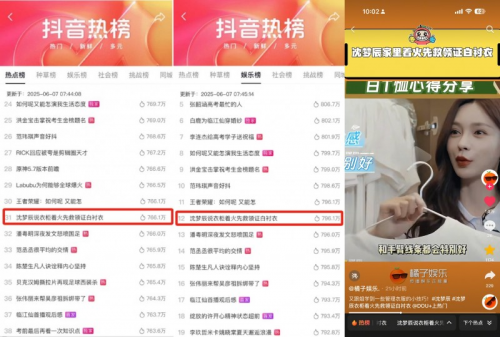 活動期間,微綜藝自然衍生6個熱點,總曝光超3.5億次。其中,#沈夢辰說衣柜著火先救領(lǐng)證白襯衣 躋身抖音總榜TOP31,娛樂榜TOP12;#費啟鳴骨子里的念舊 播放量超1.3億次,為品牌積累了大量A3人群資產(chǎn)。