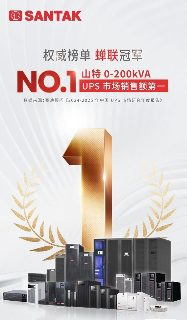 核心提示:在數字化浪潮的席卷下,數據機房和數字化設備作為企業數智轉型的基石,面對多元化的應用場景,以及企業對可靠運行、降本增效、低碳發展的核心訴求,隨之對中小功率段 UPS 提出新的要求。近日,賽迪顧問發布的《2024-2025 中國 UPS 市場研究年度報告》顯示,山特再奪 0-200kVA UPS 市場銷售額第一!憑借強大的研發實力、持續的技術創新和卓越的服務體系,山特精準把握行業發展趨勢,進一步鞏固了市場地位。