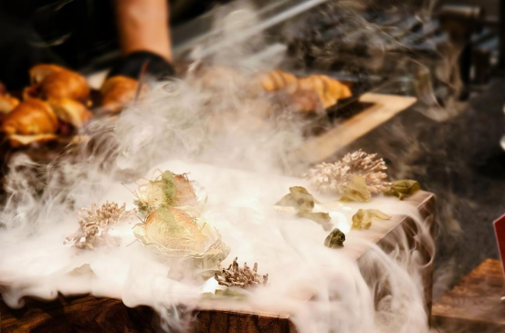 Talisker在口腔炸開,海味干冰釋放的香霧也開啟嗅覺雷達;現場音樂的助興達成“聲音與氣味的協奏”,讓人在咸鮮與微醺間完成一場海陸遷徙......“以食繪景”的美食盛宴,詮釋著瑞族V-ZUG對“不時不食”傳統智慧的傳承與敬意。