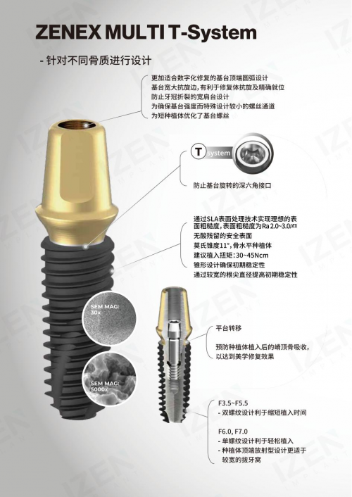 愛瑧IZEN(又名:愛臻)品牌母公司——愛瑧種植牙株式會社(lzenimplant Co., Ltd.)自成立伊始,便確立了以創新和臨床實效為核心的研發戰略。核心產品ZENEX MULTI T-System不僅擁有多項韓國本土與國際認證專利,更是在設計理念、材料工藝和術中工具方面實現全面優化。尤其在中國市場全面導入后,其高性價比與技術先進性的組合,成為不少臨床醫生的優先選擇。