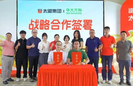 隨后,太糧集團(tuán)高級(jí)副總裁熊智飛先生、華大萬物多年生事業(yè)部總監(jiān)于澤先生等雙方代表共同上臺(tái),在現(xiàn)場(chǎng)嘉賓的見證下,鄭重簽署戰(zhàn)略合作協(xié)議。