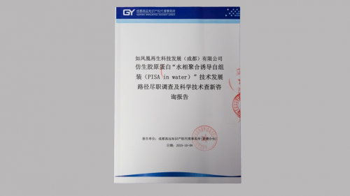 據成都高遠知識產權代理事務所專利代理人鄭勇力博士評估,通過檢索全球同類專利并比對技術方案,確認仿生膠原蛋白技術1.0為全球首創、國際領先;其2.0版本在“水相聚合誘導自組裝(PISA in water)”工藝下進一步提升穩定性及自組裝特性,并全球首次利用300 kV冷凍透射電鏡捕獲“膠原纖維束”超微結構,驗證了多批次產品自主裝形態特征的可重復性與一致性,同樣具有“全球首創、國際領先”屬性。