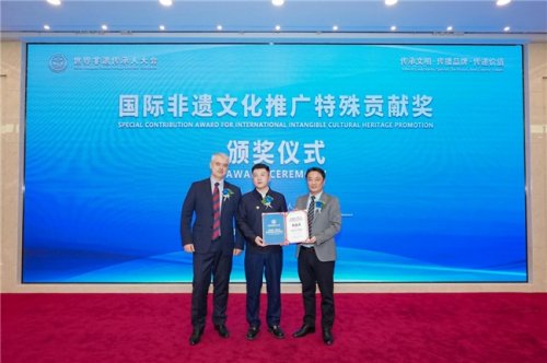 活動中,為表彰文化企業代表李雨澤先生,特頒發“國際非遺文化推廣特殊貢獻獎”。他多年來以國際視野積極推動中國非物質文化遺產走向世界,并通過搭建平臺與跨界合作,成功讓多項非遺技藝煥發時代活力,走入國際視野。在其努力下,非遺的國際影響力得到了顯著提升,為中外文明互鑒注入了新動能,是兼具遠見與行動力的文化使者。