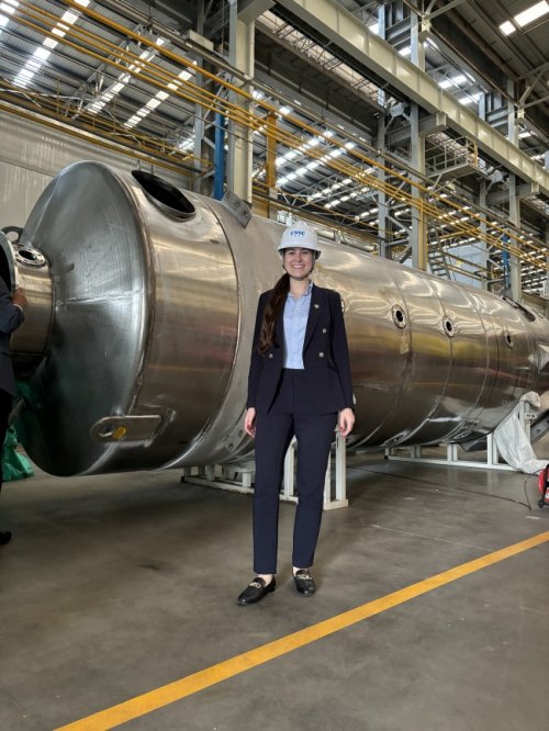 照片說明:PureteQ全球銷售經理Anna B. Hansen站在中船動力(集團)有限公司正在建造的洗滌塔前