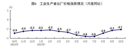 10月份,全國工業生產者出廠價格同比下降2.1%,降幅比上月收窄0.2個百分點,環比上漲0.1%;全國工業生產者購進價格同比下降2.7%,降幅收窄0.4個百分點,環比上漲0.1%。1—10月份,全國工業生產者出廠價格和購進價格同比分別下降2.7%、3.2%。
