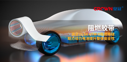 皇冠新材阻燃膠帶,助力動力電池系統提升整體安全性。